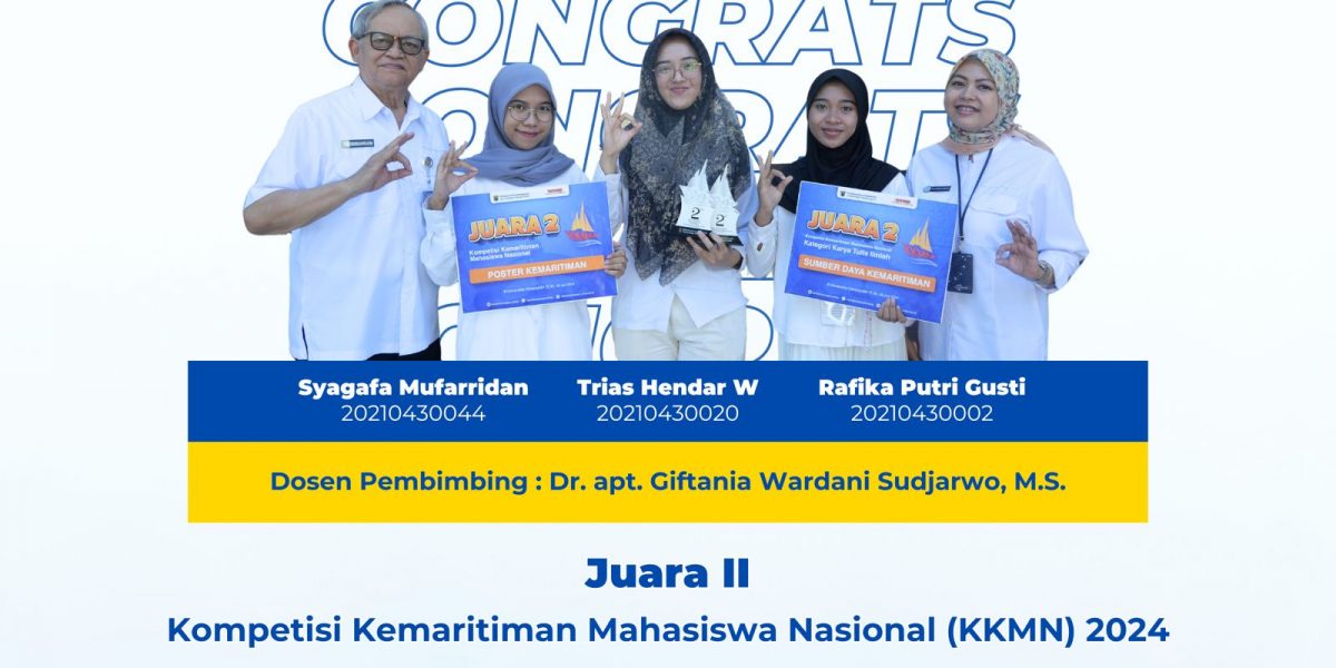 Selamat dan Sukses Trias Hendar Wiyanti – 20210430020Syagafa Mufarridan -20210430044Rafika Putri Gusti – 20210430002 Dosen Pembimbing : Dr. apt. Giftania Wardani Sudjarwo, M.S. Atas Prestasi Juara 2Kompetisi Kemaritiman Mahasiswa Nasional (KKMN) 2024Kategori Poster Kemaritiman & Karya Tulis Ilmiah Bidang Sumber Daya Kemaritiman Informasi Penerimaan Mahasiswa Barupmb.hangtuah.ac.idwa.me/6285831103555 Universitas Hang TuahExcellence in Maritime Education