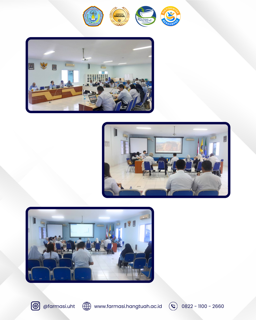 Dalam rangka meningkatkan kualitas dan mutu pendidikan dan pembelajaran dilingkungan Fakultas Farmasi Universitas Hang Tuah maka dilaksanakan rapat evaluasi dan rapat persiapan perkuliahan Program Studi Sarjana Farmasi dan Program Studi Pendidikan Profesi Apoteker. Rapat ini dipimpin langsung oleh dekan Fakultas Farmasi UHT Bapak Prof. Dr. Suko Hardjono, M.S., Apt. beserta jajaran nya. Rapat ini secara khusus membahas mengenai evaluasi perkuliahan disemester gasal TA 2025/2026 berdasarkan kuisioner yang diisi oleh mahasiswa, yang mana selanjutnya dijadikan sebagai bahan evaluasi dan acuan untuk perbaikan disemester selanjutnya.