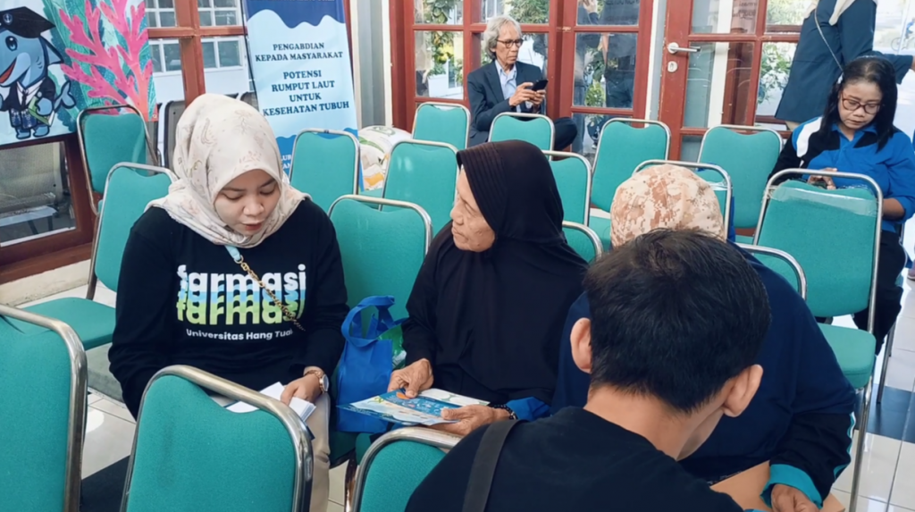 Sabtu 27 Juli 2024, Bagian Kimia Fakultas Farmasi Universitas Hang Tuah mengadakan pengabdian kepada masyarakat mengenai “Potensi Rumput Laut untuk Kesehatan Tubuh”. Kegiatan ini dilaksanakan di Kelurahan Keputih, Kecamatan Sukolilo, Kota Surabaya, yang dihadiri oleh masyarakat lansia Kelurahan Keputih. Kegiatan dihadiri langsung oleh Dekan Fakultas Farmasi Hang Tuah Bapak Prof. Dr. apt. Suko Harjono, M.S., Kepala Desa Kelurahan Keputih Surabaya Bapak A.F Fajar Febriansyah., S.H., Ketua Pengmas Ibu apt. Astrid Kusuma P., S.Farm. M. Farm., beserta Bapak Ibu Dosen Fakultas Farmasi Universitas Hang Tuah. Kegiatan pengabdian masyarakat ini juga melibatkan mahasiswa Fakultas Farmasi Universitas Hang Tuah.